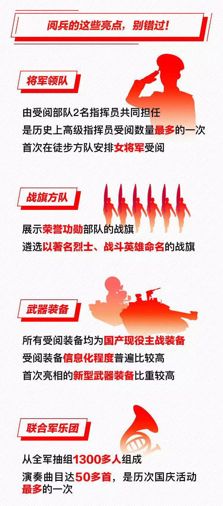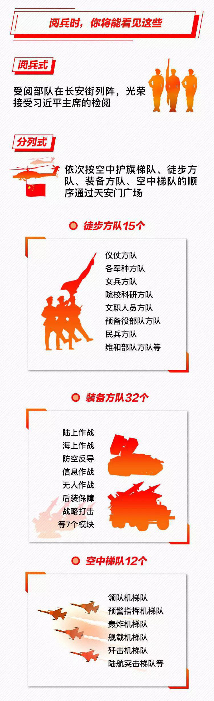 為慶祝新中國(guó)成立70周年,10月1日北京天安門廣場(chǎng)將舉行盛大閱兵式。屆時(shí),32個(gè)裝備方隊(duì)、12個(gè)空中梯隊(duì)將通過天安門廣場(chǎng),接受檢閱。此次閱兵,所有受閱裝備均為國(guó)產(chǎn)現(xiàn)役主戰(zhàn)裝備,其中包括我軍部分新型裝備,是近幾次閱兵中規(guī)模最大的一次。 強(qiáng)國(guó)必須強(qiáng)軍,強(qiáng)軍必須利器。作為我軍機(jī)械化、信息化、智能化裝備發(fā)展的骨干,全軍毀傷打擊的核心支撐和現(xiàn)代化新型陸軍體系作戰(zhàn)能力科研制造的主體,此次國(guó)慶閱兵式,兵器工業(yè)集團(tuán)研制生產(chǎn)的16型裝備將接受黨和人民的檢閱,分布在受閱裝備方隊(duì)7個(gè)模塊中的陸上作戰(zhàn)、防空反導(dǎo)、信息作戰(zhàn)、無人作戰(zhàn)、后裝保障五個(gè)模塊、32個(gè)方隊(duì)中的12個(gè)方隊(duì),集中展示了兵器工業(yè)集團(tuán)履行強(qiáng)軍首責(zé)、自主創(chuàng)新的最新成果。 10月1日大閱兵 我們準(zhǔn)備好了 |