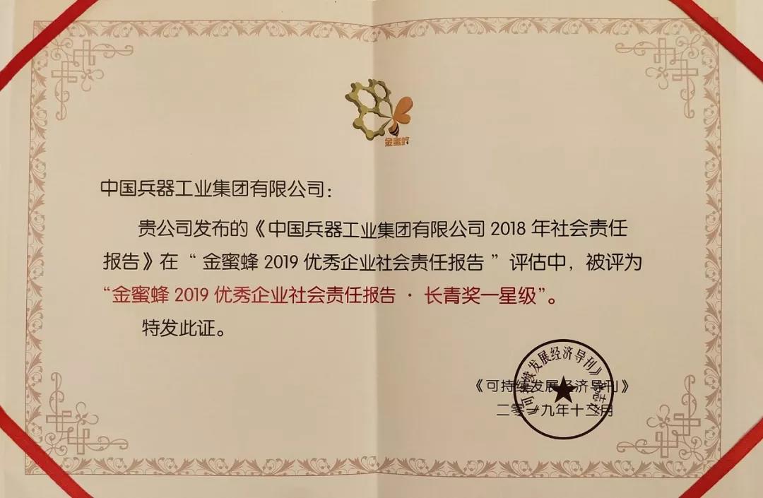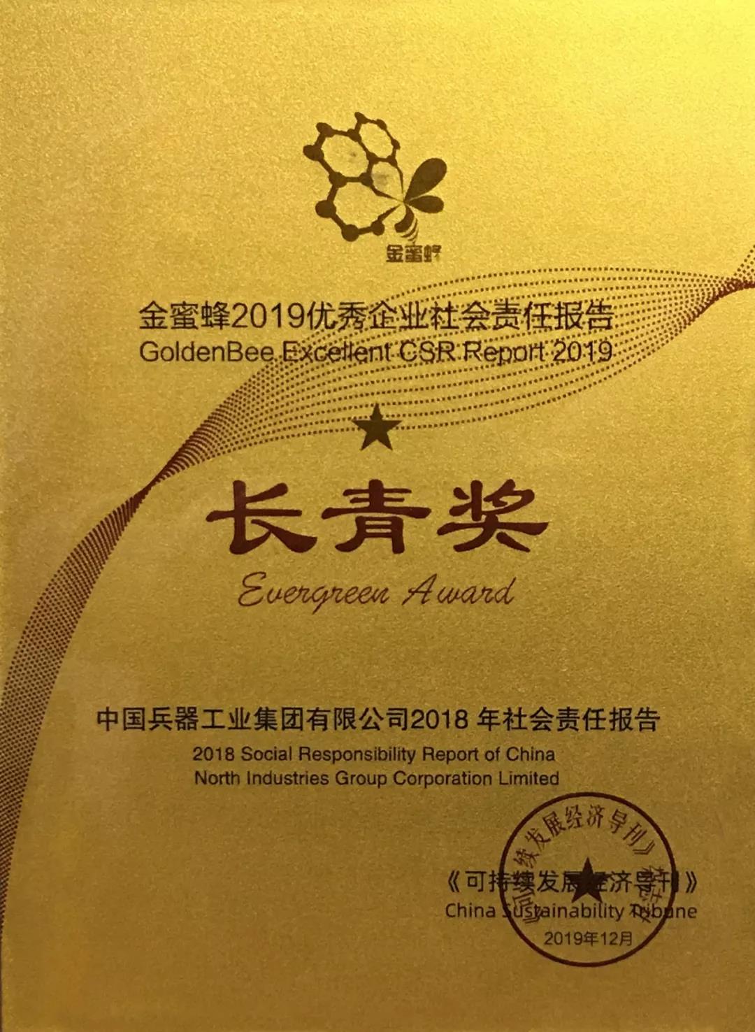兵器工業(yè)集團(tuán)社會(huì)責(zé)任報(bào)告再獲“金蜜蜂優(yōu)秀企業(yè)社會(huì)責(zé)任報(bào)告·長(zhǎng)青獎(jiǎng)” |