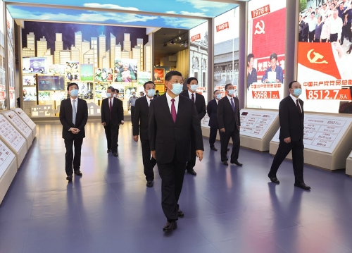 新近落成的中國共產(chǎn)黨歷史展覽館巍然矗立,氣勢恢宏。下午3時(shí)20分許,習(xí)近平等黨和國家領(lǐng)導(dǎo)同志來到這里,步入展廳參觀展覽。展覽以“不忘初心、牢記使命”為主題,精心設(shè)計(jì)了“建立中國共產(chǎn)黨 奪取新民主主義革命偉大勝利”、“成立中華人民共和國 進(jìn)行社會(huì)主義革命和建設(shè)”、“實(shí)行改革開放 開創(chuàng)和發(fā)展中國特色社會(huì)主義”、“推進(jìn)中國特色社會(huì)主義進(jìn)入新時(shí)代 全面建成小康社會(huì) 開啟全面建設(shè)社會(huì)主義現(xiàn)代化國家新(人民日報(bào))征程”4個(gè)部分,通過2600余幅圖片、3500多件套文物實(shí)物,第一次全方位、全過程、全景式、史詩般展現(xiàn)中國共產(chǎn)黨波瀾壯闊的百年歷程,濃墨重彩地反映黨的不懈奮斗史、不怕犧牲史、理論探索史、為民造福史、自身建設(shè)史,使人們深刻認(rèn)識(shí)到紅色政權(quán)來之不易、新中國來之不易、中國特色社會(huì)主義來之不易,深刻認(rèn)識(shí)到中國共產(chǎn)黨為什么能、馬克思主義為什么行、中國特色社會(huì)主義為什么好。