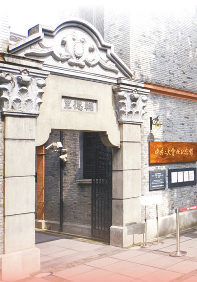 梧桐掩映的道路上,沿街一幢小小石庫門建筑靜靜佇立。黑漆大門,青磚粉線,屋角紅旗飄揚(yáng),在藍(lán)天映襯下格外奪目。上海,興業(yè)路76號,當(dāng)年的望志路106號,百年前的1921年7月23日晚,中國共產(chǎn)黨第一次全國代表大會在這里召開。