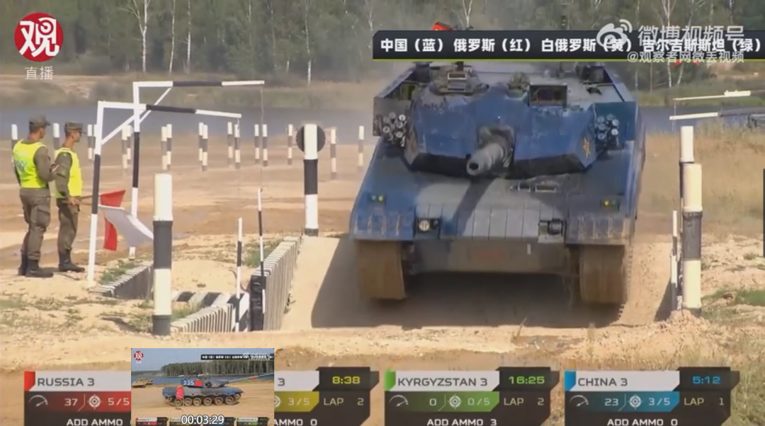 96B坦克助力中國(guó)隊(duì)挺進(jìn)“坦克兩項(xiàng)”半決賽 當(dāng)?shù)貢r(shí)間8月21日 “國(guó)際軍事比賽-2022” “坦克兩項(xiàng)”單車(chē)賽第三輪的比拼 在俄羅斯阿拉比諾拉開(kāi)帷幕 中國(guó)參賽隊(duì)駕駛96B坦克 發(fā)揮出色 在單車(chē)賽中 中國(guó)與白俄羅斯、俄羅斯、吉爾吉斯斯坦 分在同一組進(jìn)行比拼 比賽中 96B坦克全程發(fā)揮穩(wěn)定 一路疾馳通過(guò) 涉水場(chǎng)、土嶺、車(chē)轍橋等各類(lèi)障礙 順利完成比賽 高射機(jī)槍命中 本屆“國(guó)際軍事比賽”“坦克兩項(xiàng)”項(xiàng)目 共有21個(gè)國(guó)家和地區(qū)的隊(duì)伍參加 中國(guó)參賽隊(duì) 335車(chē)組、334車(chē)組、336車(chē)組 分別取得第五、第八、第九名 以單車(chē)賽總評(píng)第二的成績(jī) 成功晉級(jí)半決賽
