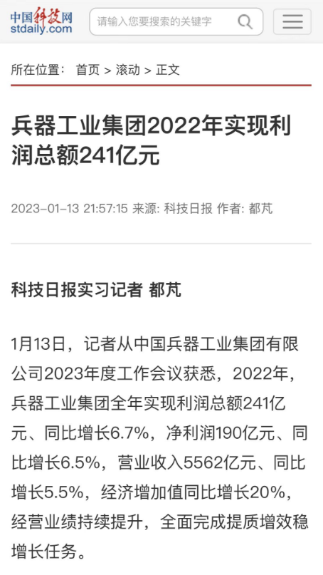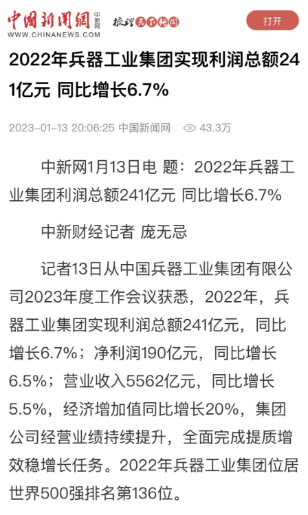 1月13日,中國(guó)兵器工業(yè)集團(tuán)有限公司召開(kāi)2023年度工作會(huì)議,傳達(dá)學(xué)習(xí)中央領(lǐng)導(dǎo)同志、軍方首長(zhǎng)和上級(jí)部門(mén)重要批示,總結(jié)集團(tuán)公司2022年工作,研究部署2023年主要工作任務(wù)。 集團(tuán)公司2022年重點(diǎn)工作取得的成績(jī)及下一步的改革發(fā)展受到社會(huì)媒體廣泛關(guān)注。新華社、新華財(cái)經(jīng)、人民網(wǎng)、經(jīng)濟(jì)日?qǐng)?bào)客戶端、光明日?qǐng)?bào)客戶端、中國(guó)日?qǐng)?bào)網(wǎng)、中國(guó)科技網(wǎng)、中國(guó)新聞網(wǎng)、央廣網(wǎng)、國(guó)資委網(wǎng)站、學(xué)習(xí)強(qiáng)國(guó)中央企業(yè)學(xué)習(xí)平臺(tái)、新浪網(wǎng)、騰訊網(wǎng)、搜狐網(wǎng)、網(wǎng)易網(wǎng)、今日頭條等中央主流媒體、國(guó)家部委網(wǎng)站及知名網(wǎng)絡(luò)媒體對(duì)集團(tuán)公司工作會(huì)議進(jìn)行了報(bào)道,重點(diǎn)關(guān)注集團(tuán)公司高質(zhì)量發(fā)展、科技創(chuàng)新、戰(zhàn)略性新興產(chǎn)業(yè)培育、深化改革、國(guó)際化經(jīng)營(yíng)、履行央企社會(huì)責(zé)任等內(nèi)容。其中新華社以《北斗時(shí)空智能服務(wù)平臺(tái)累計(jì)服務(wù)終端數(shù)突破15億》為題,重點(diǎn)報(bào)道了集團(tuán)公司2022年在自主創(chuàng)新、戰(zhàn)略新興產(chǎn)業(yè)培育、專利申請(qǐng)等方面取得的成績(jī);經(jīng)濟(jì)日?qǐng)?bào)客戶端、光明日?qǐng)?bào)客戶端、中國(guó)日?qǐng)?bào)網(wǎng)等以《兵器工業(yè)集團(tuán)2022年經(jīng)營(yíng)業(yè)績(jī)持續(xù)提升》為題,重點(diǎn)報(bào)道了集團(tuán)公司在高質(zhì)量發(fā)展、全面完成提質(zhì)增效穩(wěn)增長(zhǎng)方面取得的成績(jī)。集團(tuán)公司門(mén)戶網(wǎng)站、微信公眾號(hào)、微博等新媒體也對(duì)集團(tuán)公司工作會(huì)議進(jìn)行了及時(shí)報(bào)道,各成員單位紛紛對(duì)相關(guān)內(nèi)容進(jìn)行轉(zhuǎn)載,引發(fā)全系統(tǒng)關(guān)注。 新華社:北斗時(shí)空智能服務(wù)平臺(tái)累計(jì)服務(wù)終端數(shù)突破15億 新華財(cái)經(jīng):兵器工業(yè)集團(tuán)2022年實(shí)現(xiàn)凈利潤(rùn)190億元 同比增長(zhǎng)6.5% 人民網(wǎng):2022年中央企業(yè)營(yíng)收同比增長(zhǎng)8.3% 科技創(chuàng)新成效顯著 經(jīng)濟(jì)日?qǐng)?bào)客戶端:兵器工業(yè)集團(tuán)2022年經(jīng)營(yíng)業(yè)績(jī)持續(xù)提升 光明日?qǐng)?bào)客戶端:兵器工業(yè)集團(tuán)2022年經(jīng)營(yíng)業(yè)績(jī)持續(xù)提升 中國(guó)日?qǐng)?bào)網(wǎng):兵器工業(yè)集團(tuán)2022年經(jīng)營(yíng)業(yè)績(jī)持續(xù)提升 中國(guó)科技網(wǎng):兵器工業(yè)集團(tuán)2022年實(shí)現(xiàn)利潤(rùn)總額241億元 中國(guó)新聞網(wǎng):2022年兵器工業(yè)集團(tuán)實(shí)現(xiàn)利潤(rùn)總額241億元 同比增長(zhǎng)6.7% 國(guó)資委網(wǎng)站:2022年兵器工業(yè)集團(tuán)實(shí)現(xiàn)利潤(rùn)總額241億元 同比增長(zhǎng)6.7% 學(xué)習(xí)強(qiáng)國(guó)中央企業(yè)學(xué)習(xí)平臺(tái):兵器工業(yè)集團(tuán)2022年經(jīng)營(yíng)業(yè)績(jī)持續(xù)提升 集團(tuán)公司職工及廣大網(wǎng)友熱議工作會(huì)議 “這次會(huì)議全面總結(jié)了2022年工作,深入分析研判當(dāng)前形勢(shì),部署2023年重點(diǎn)工作,為我們做好2023年及今后一個(gè)時(shí)期的工作明確了目標(biāo)、堅(jiān)定了信心?!?/p> “作為兵工人,我要苦練內(nèi)功、不懼挑戰(zhàn)、奮勇向前,為建設(shè)具有全球競(jìng)爭(zhēng)力的世界一流集團(tuán)公司貢獻(xiàn)自己的力量?!?/p> “聚焦高科技領(lǐng)域,制造更多的大國(guó)重器,讓更多的產(chǎn)品服務(wù)老百姓?!?/p> “在不平凡的2022年取得了亮眼的工作成績(jī),為兵器工業(yè)點(diǎn)贊。” “希望能有更多新型武器裝備部隊(duì),2023年,望你們?cè)賱?chuàng)輝煌,加油!” |