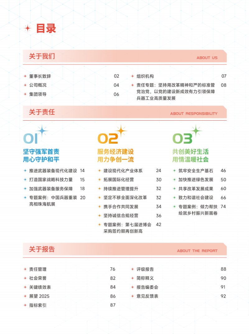 近日,中國(guó)兵器工業(yè)集團(tuán)有限公司正式發(fā)布《中國(guó)兵器工業(yè)集團(tuán)有限公司2024年度社會(huì)責(zé)任報(bào)告》。本次報(bào)告是集團(tuán)公司第16份年度社會(huì)責(zé)任報(bào)告,從堅(jiān)守強(qiáng)軍首責(zé)、服務(wù)經(jīng)濟(jì)建設(shè)、共創(chuàng)美好生活三個(gè)維度,全面展示集團(tuán)公司履行社會(huì)責(zé)任的實(shí)踐與成效。經(jīng)中國(guó)企業(yè)社會(huì)責(zé)任報(bào)告評(píng)級(jí)專家委員會(huì)評(píng)定,《報(bào)告》獲得“五星佳”最高評(píng)級(jí),成為軍工行業(yè)唯一一家連續(xù)6年獲此殊榮的中央企業(yè)。 兵器工業(yè)集團(tuán)2024年度社會(huì)責(zé)任報(bào)告 部分內(nèi)容摘錄 ↓↓↓ 文/社會(huì)責(zé)任部 |